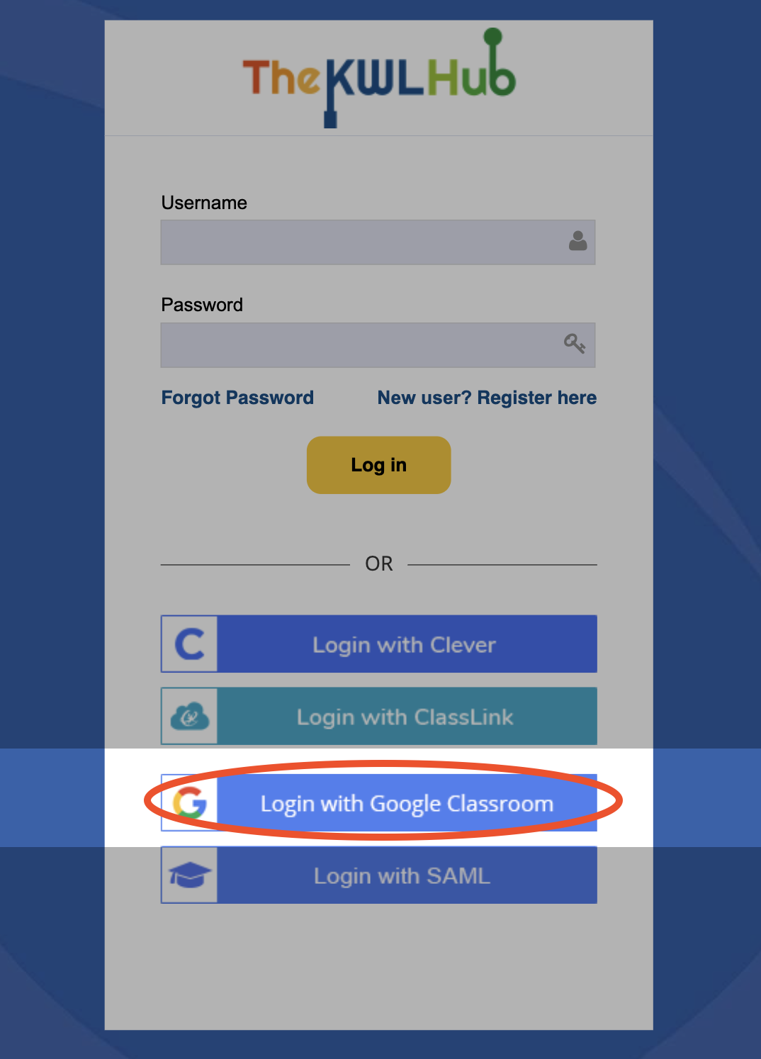 1. On The KWL Hub login page, click "Login via Google Classroom"
